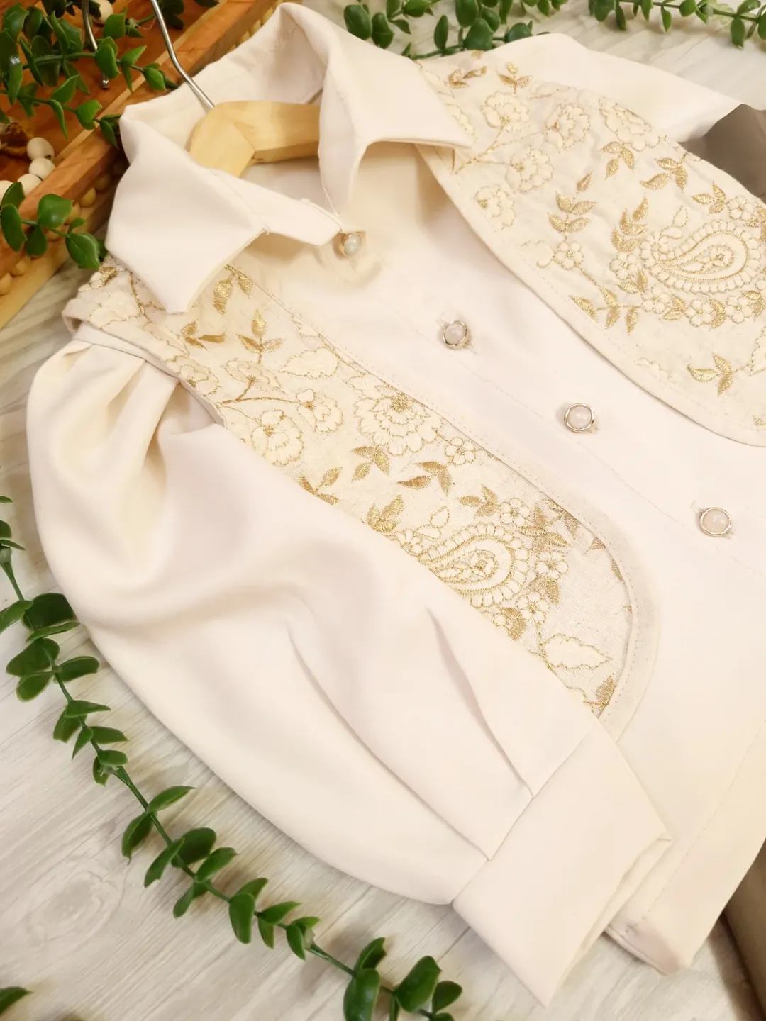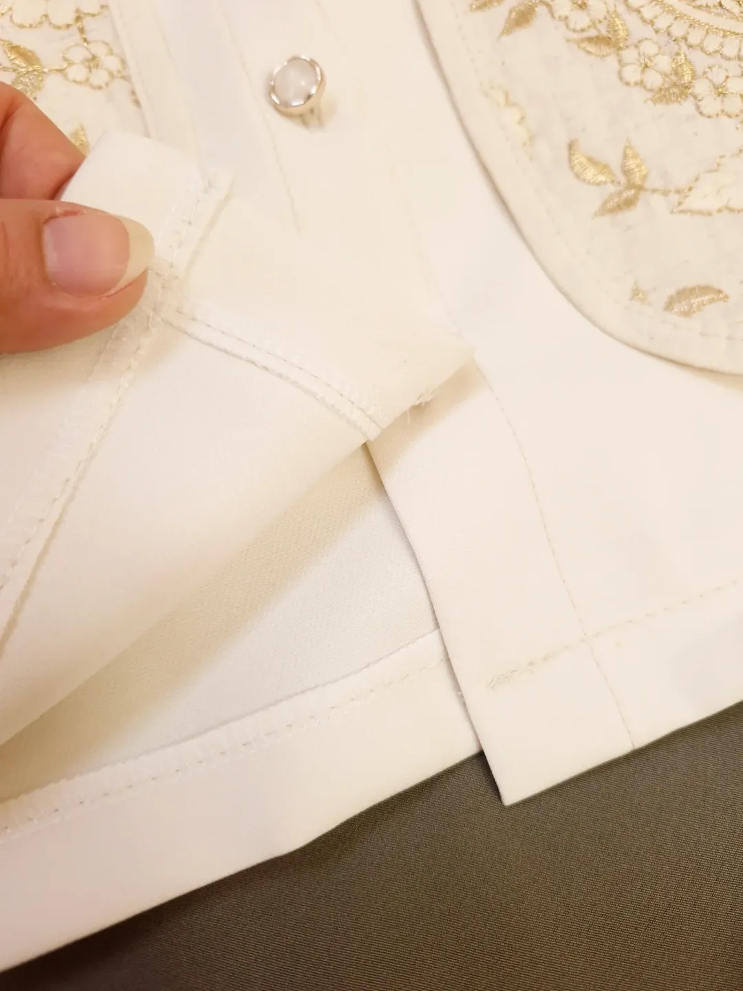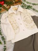 جنس لباس : جنس شومیز مازراتی ، جنس شلوار مازراتی و جنس جلیقه لینن سوزن دوزی شده