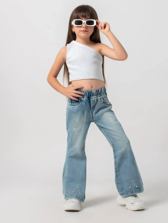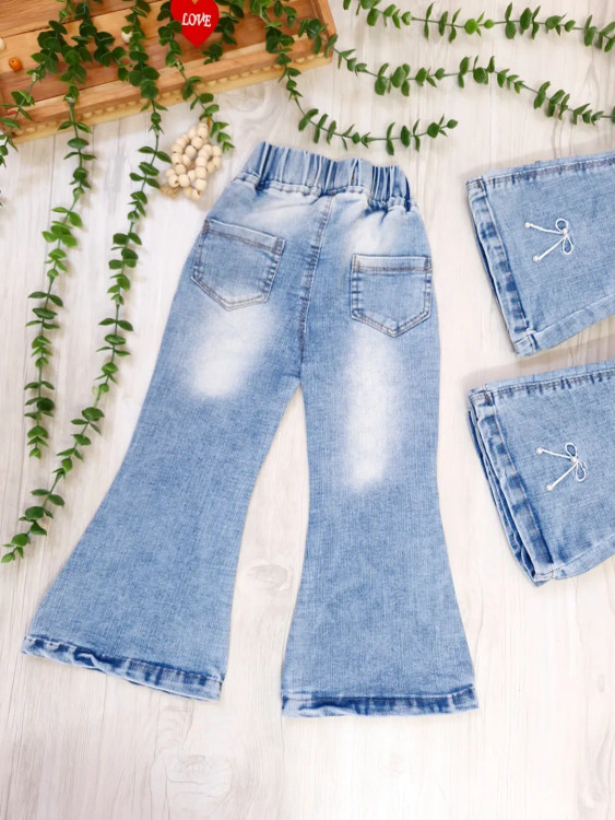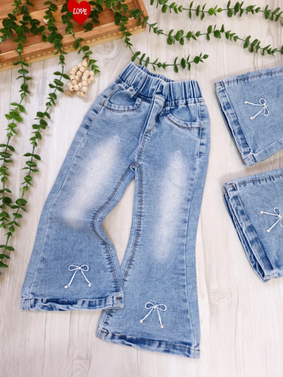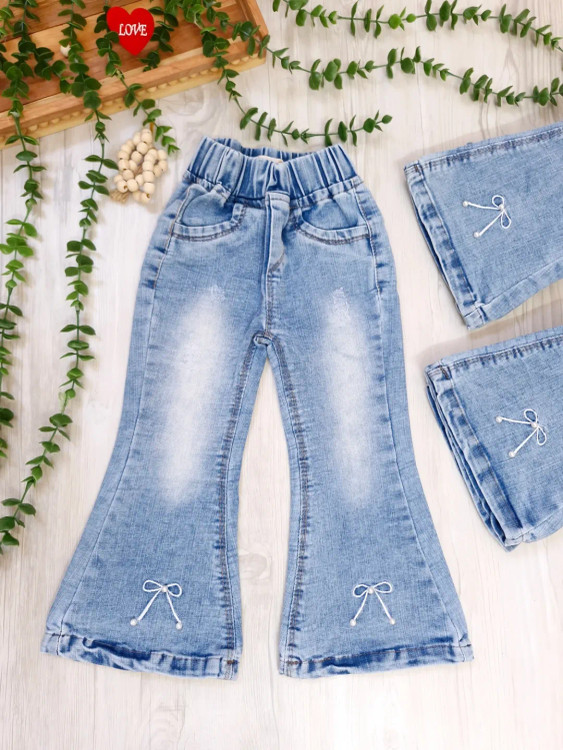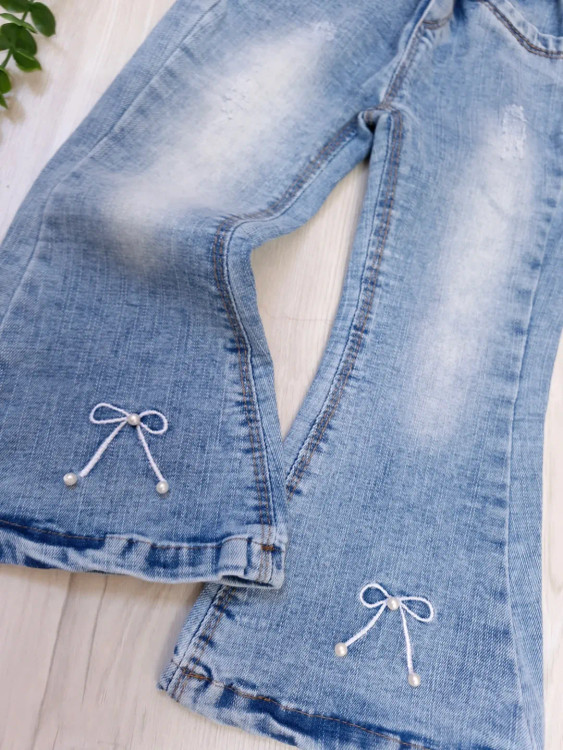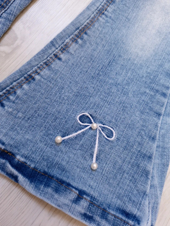 جنس شلوار جین پاپیون پائین شلوار گلدوزی شده و مرواریدها پانچ شده هستند