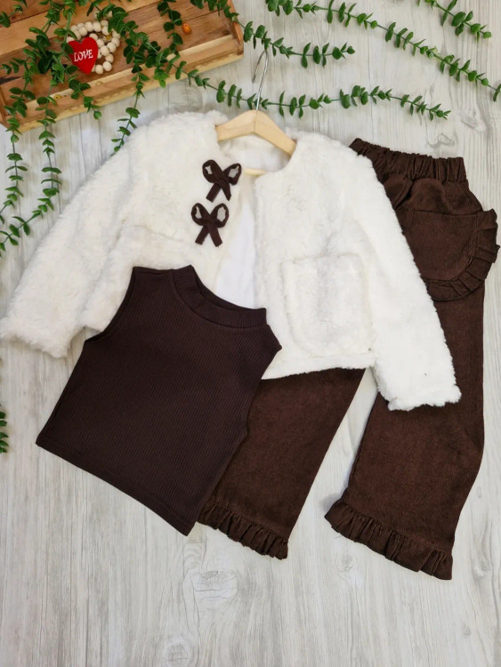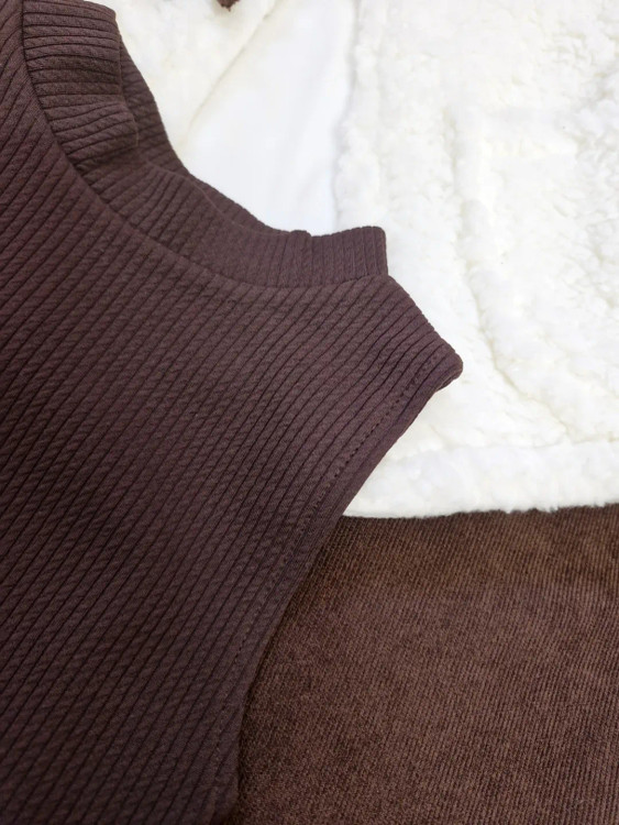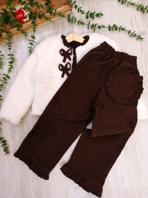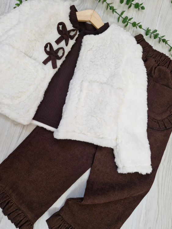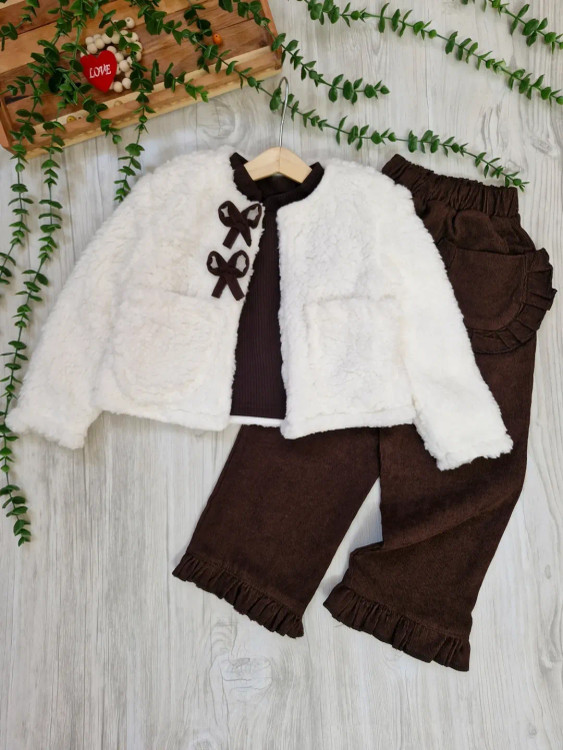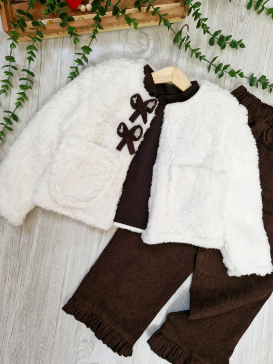 این ست خوشگل، ترکیبِ لطافت پشمی و رنگ دلنشین شکلاتیه… هم گرم و نرمه برای روزهای سرد، هم به قدری شیکه که وقتی دخترکت بپوشه، چشم ازش برداشتن سخت میشه. از اون ستهاست که هر مامانی ببینه میگه: «این دقیقاً همون چیزیه که برای زمستونِ دخترم میخواستم!»