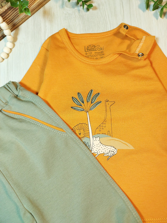 🔺️۶-۹ ماه: پهنا بلوز ۲۲ ، قد بلوز ۳۱ ، قد آستین ۲۳ ، قد شلوار ۳۸