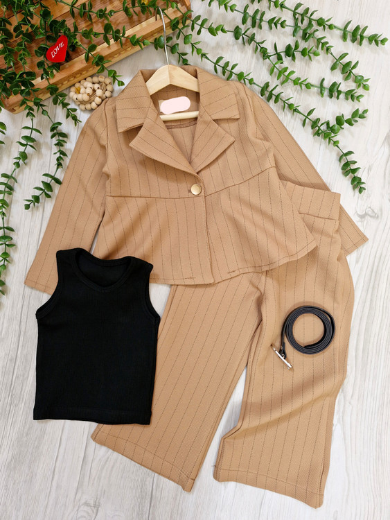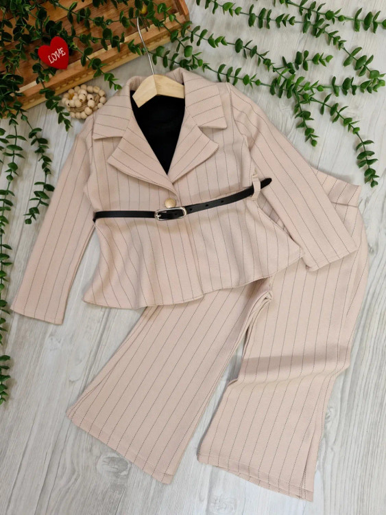 ست دخترونه، ترکیب ظرافت و استایل اروپاییه با جنس کت و شلوار مازراتی کجراه و جنس تاپ فانریپ پنبه فوق العاده شیک با کیفیت بینظیر و درجه یک.