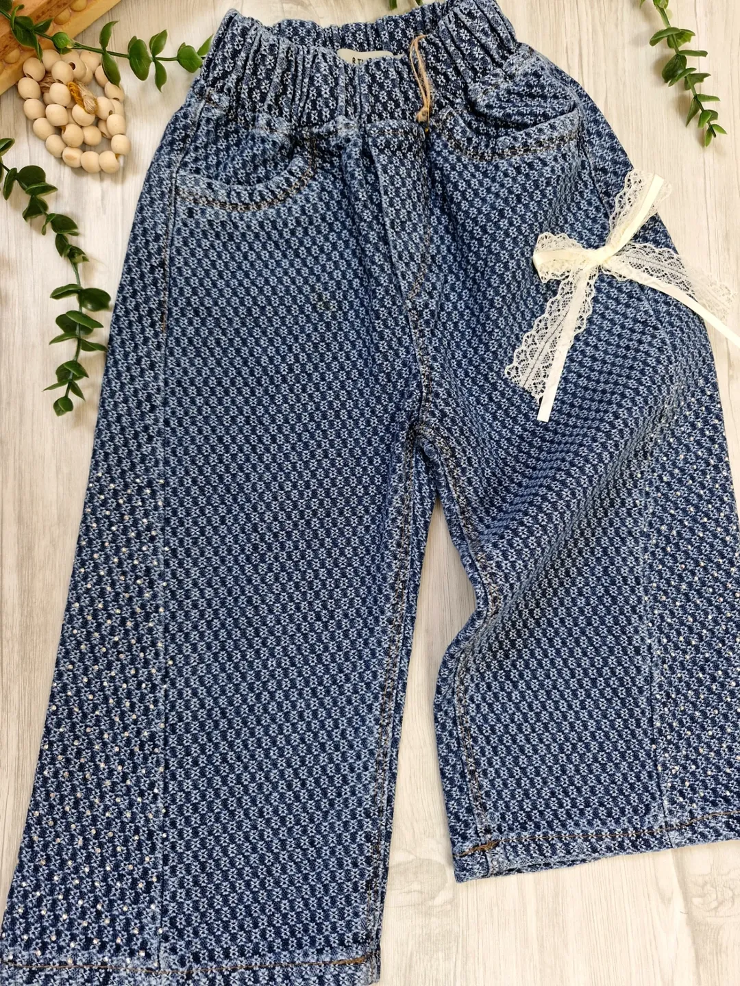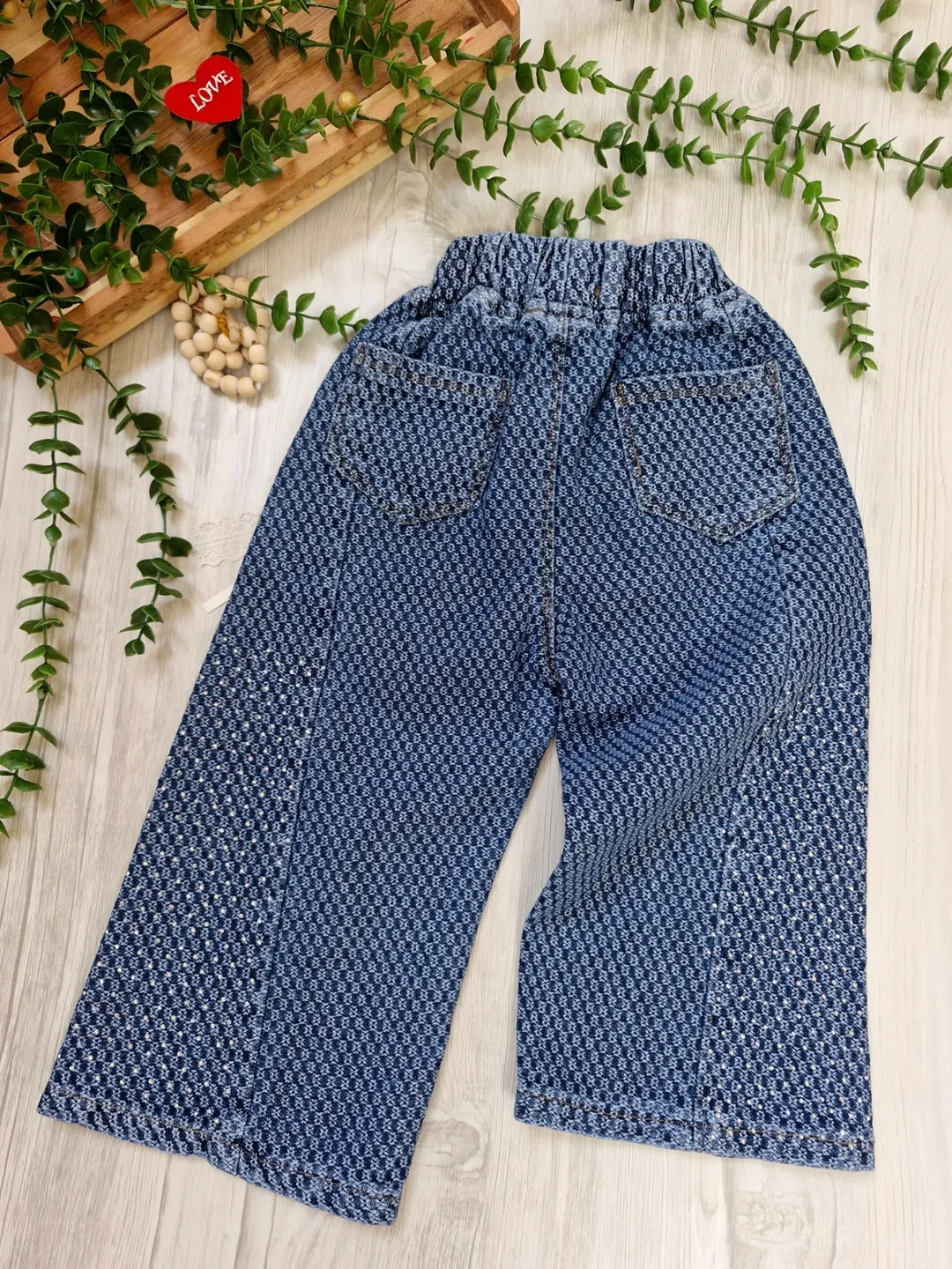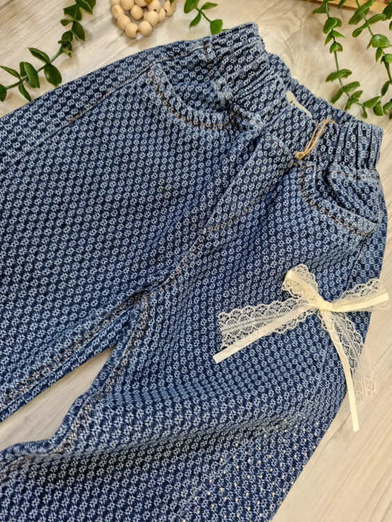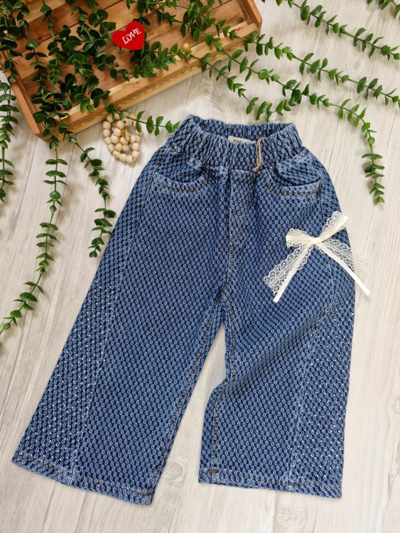 شلوار جین بگ نگین‌کاری شده دخترانه بچگانه