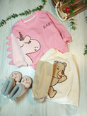 بلوز آستین بلند بچگانه اسپرت وارداتی اورجینال طرح خرس و تک شاخ جنس دورس دونخ