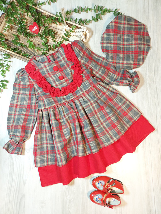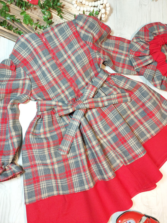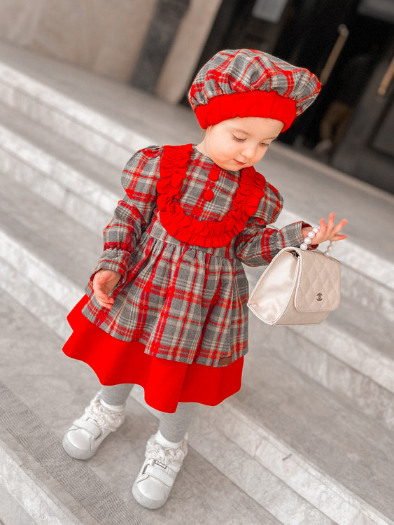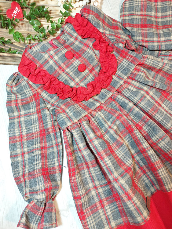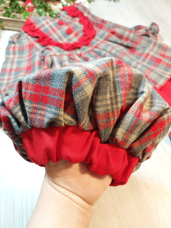 پیراهن آستین بلند بچگانه با کلاه دخترانه طرح چهارخانه جنس پشمی کشمیر سپاهان