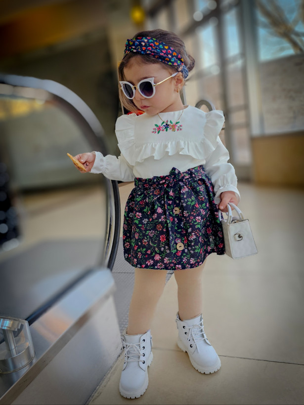 ست شومیز و دامن بچگانه مجلسی دخترانه جنس لینن